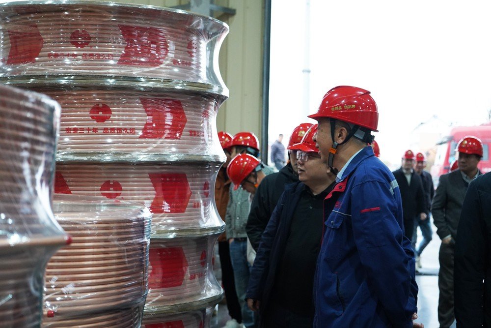 In the early morning, the attending guests entered the Hongta Intelligent Production Workshop and closely observed the intelligent production process of copper tubes. The efficient operation of the automated production line, the precise manufacturing techniques, and the orderly finished product warehouse all gave the guests a deeper understanding of Hongta's product quality and technical strength.