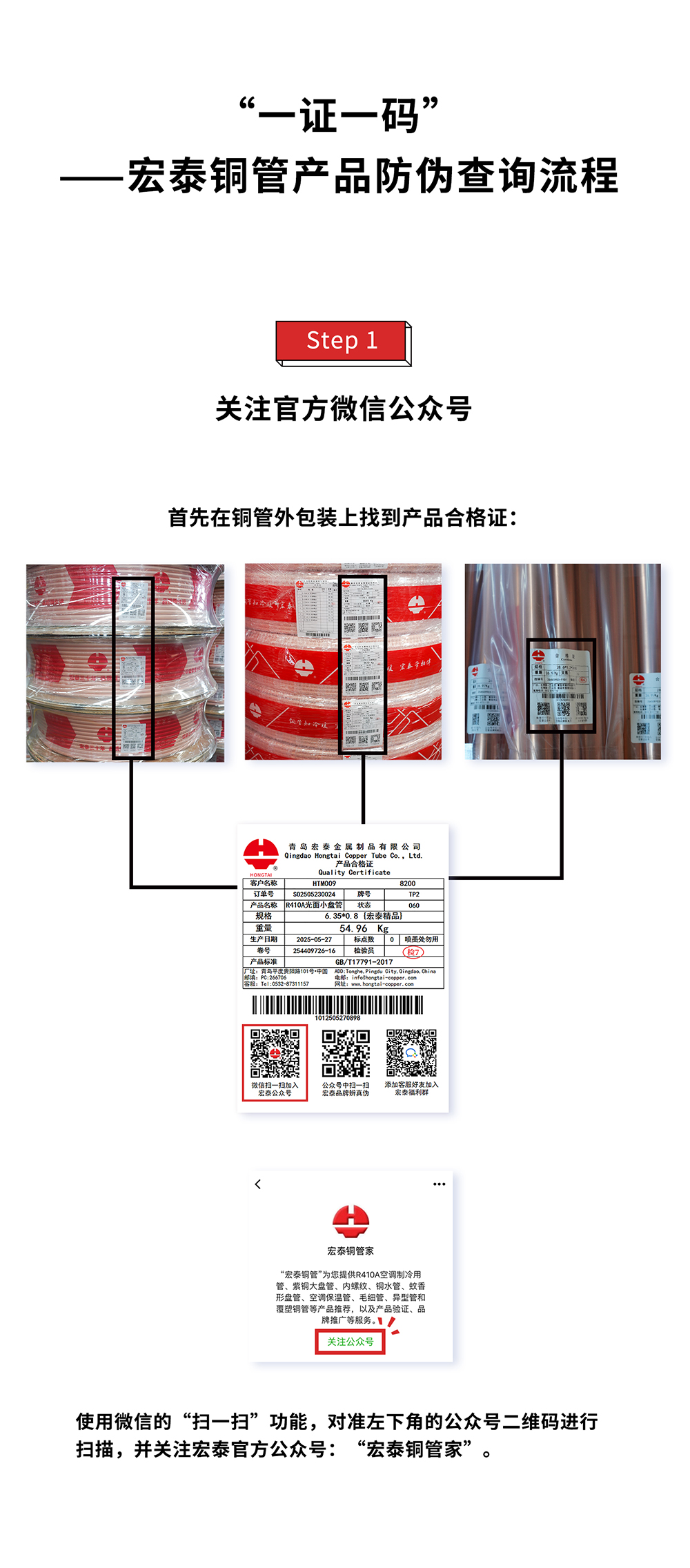 Qingdao Hongtai Copper Co., Ltd. and QINGDAO HONGTAI COPPER TUBE CO.,LTD are responsible for the production of "Hongtai" brand copper tubes. Please identify the above two companies when purchasing Hongtai copper tubes online and stay away from all kinds of false information.